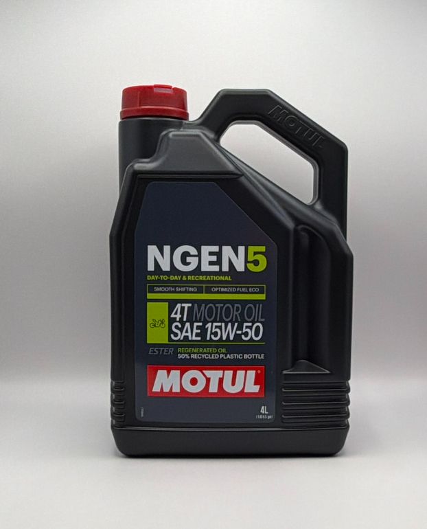 Motul NGEN 5 15w50 4T Next Generation Sustainable Ester Base Synthetic Blend (Upto 75% High Grade Regenerated Oils) API SP, JASO MA2 (2023) (4) (NLA When Out)